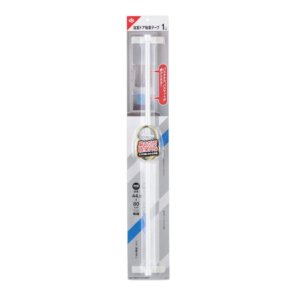 ●浴室ドアにピッタリの形状で、ドアの幅に合わせて伸縮が可能です。 ●バスタオル、バスマットが掛けられます。 ●粘着テープで簡単に取り付けできます。 ●さびにくく丈夫なステンレスパイプです。