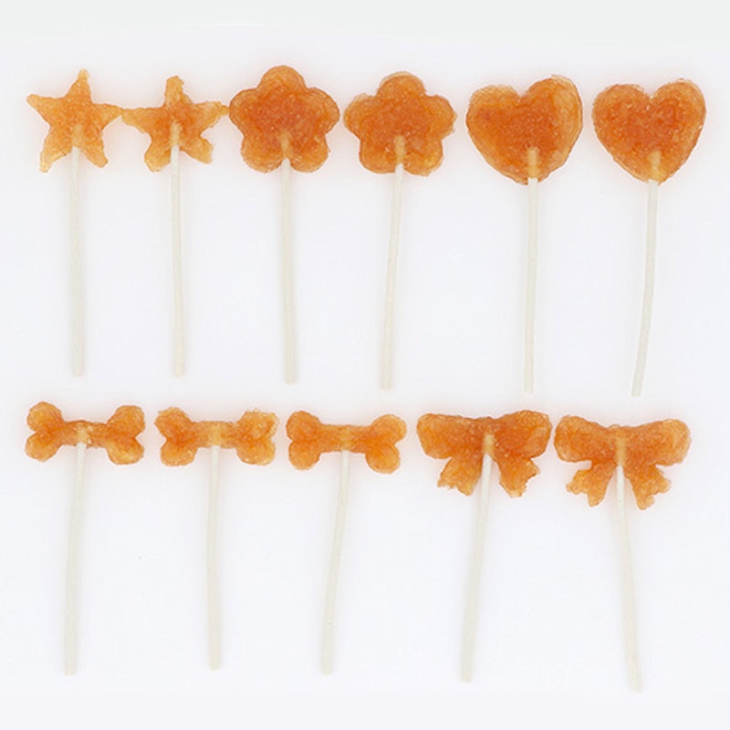 ササミとガムでできているから全部食べられてワンちゃん大満足!そのまま食べてもケーキのデコレーションにもぴったり!かわいい5種類の形入り。着色料不使用。