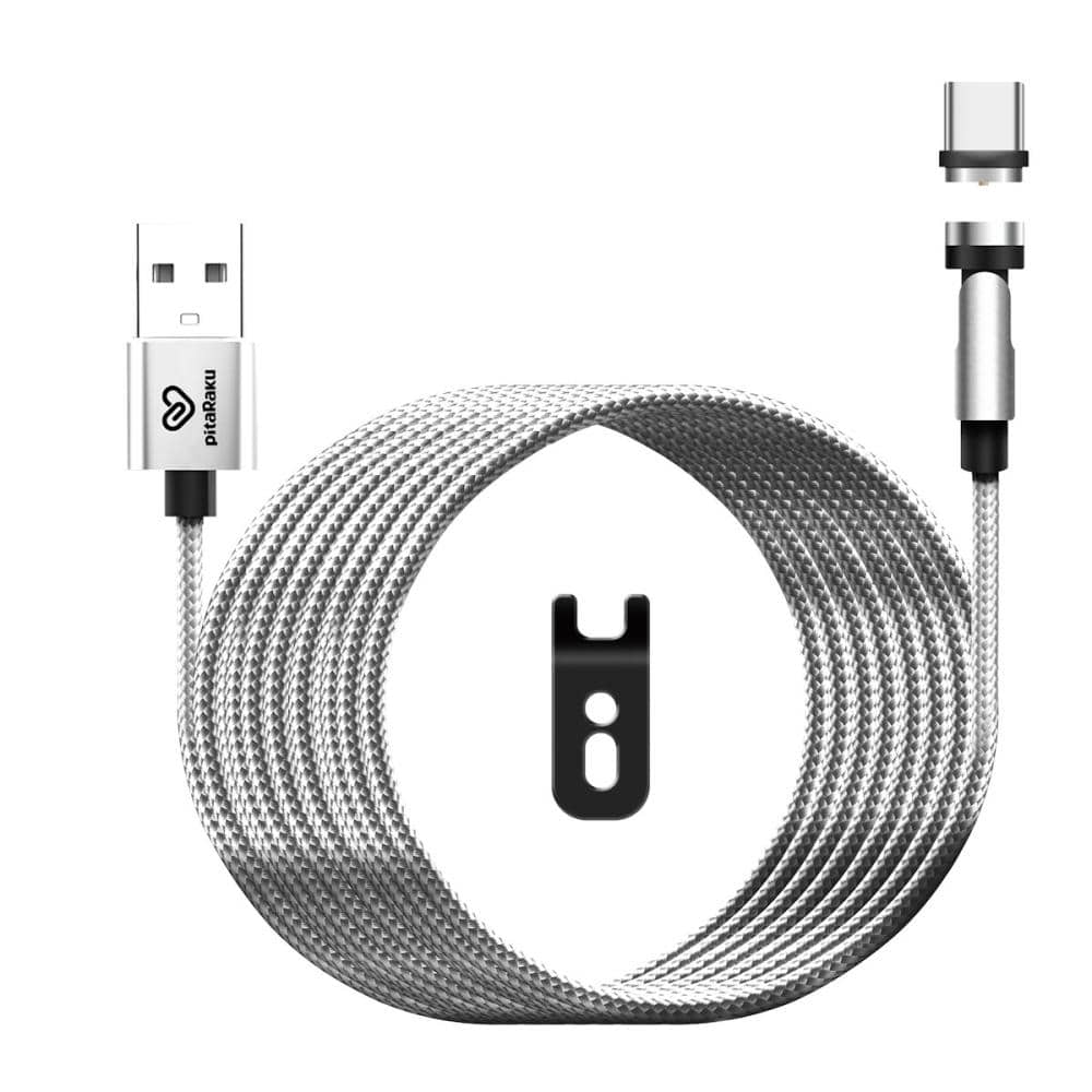 専用端子をスマホに差し込んでおけばケーブルを差し込む手間なく、磁石の力でピタッと接続。 ケーブルの付け根が180度曲がるのでケーブルに負荷がかからず断線しづらい。 マグネット接触部が360度回転するので、接続方向自由自在。 マグネット部にLEDライト搭載。暗くても見つかりやすく充電中は光が漏れないので就寝時にも眩しくありません。