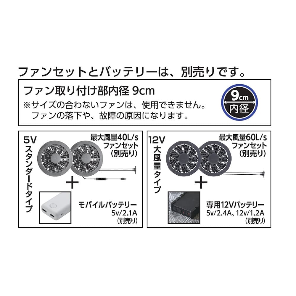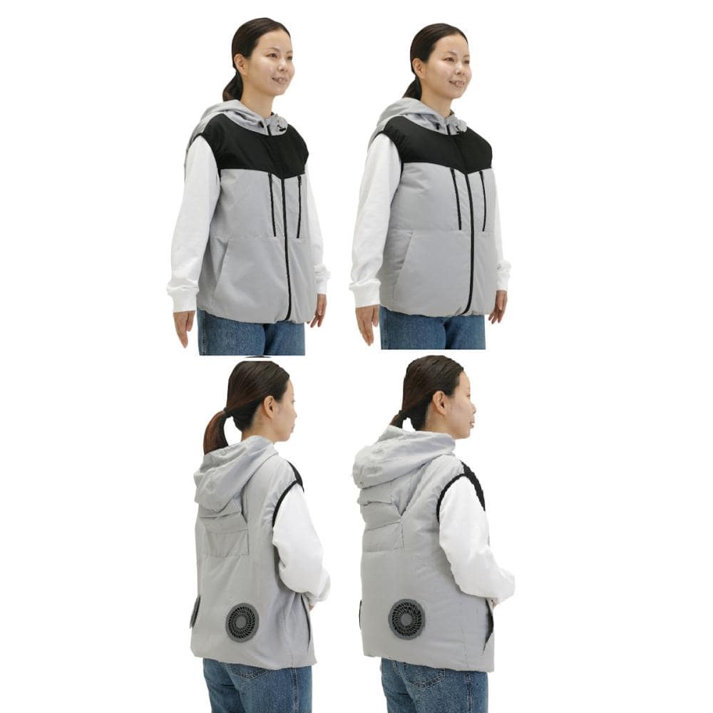 ●ファン取り付け部内径9cm。 ※サイズの合わないファンは、使用できません。ファンの落下や、故障の原因になります。 ●背中のジャバラ構造で背中から首元まで風が通りやすい。 ●両内側にバッテリーポケット。 ●腰部内側に保冷剤用ポケット(保冷剤は別売り)。保冷剤を入れることで風をより冷たく感じます。 ●フードアジャスター付き、マジックテープで調整可能。
