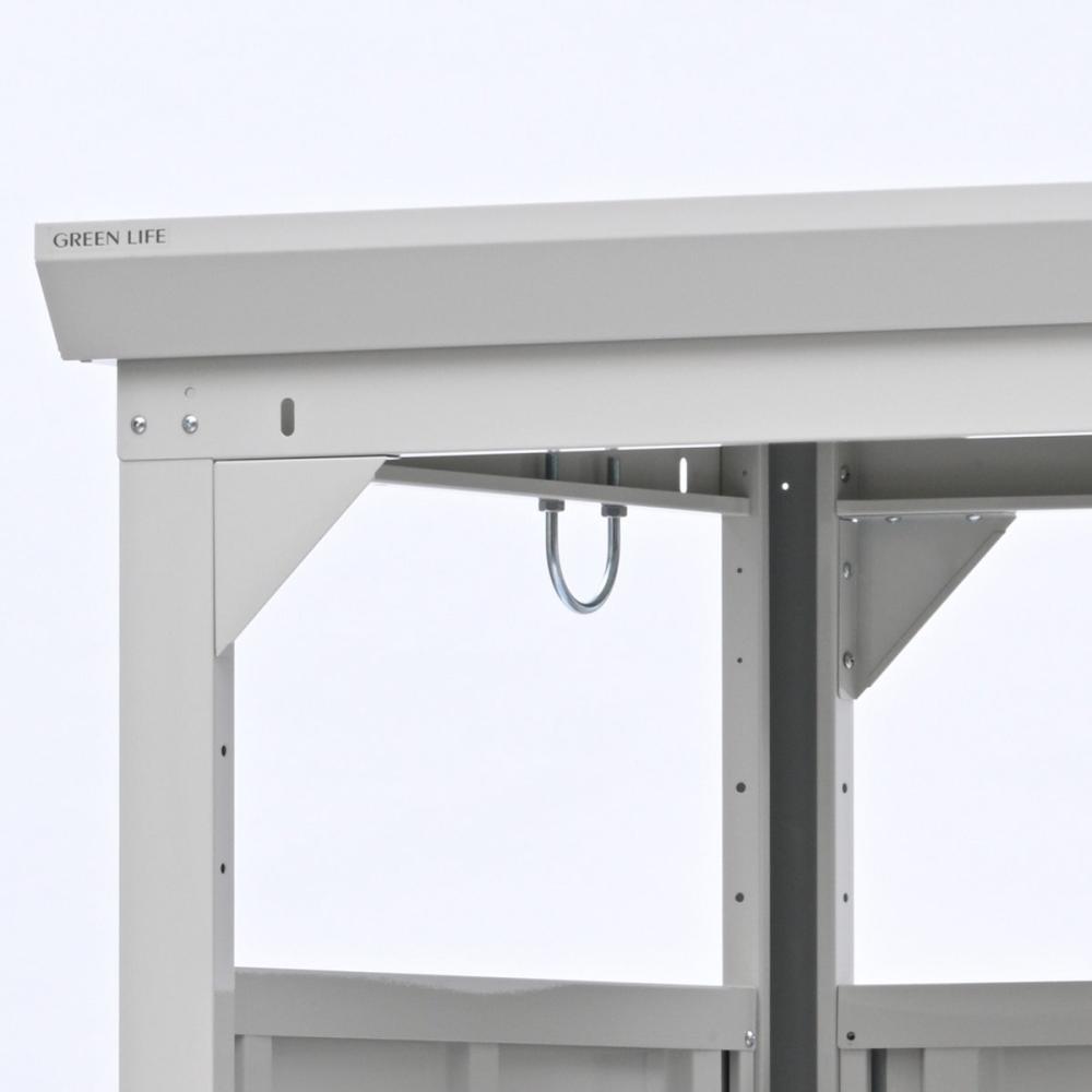 ●物干竿(別売)をかけられるU字フック付き