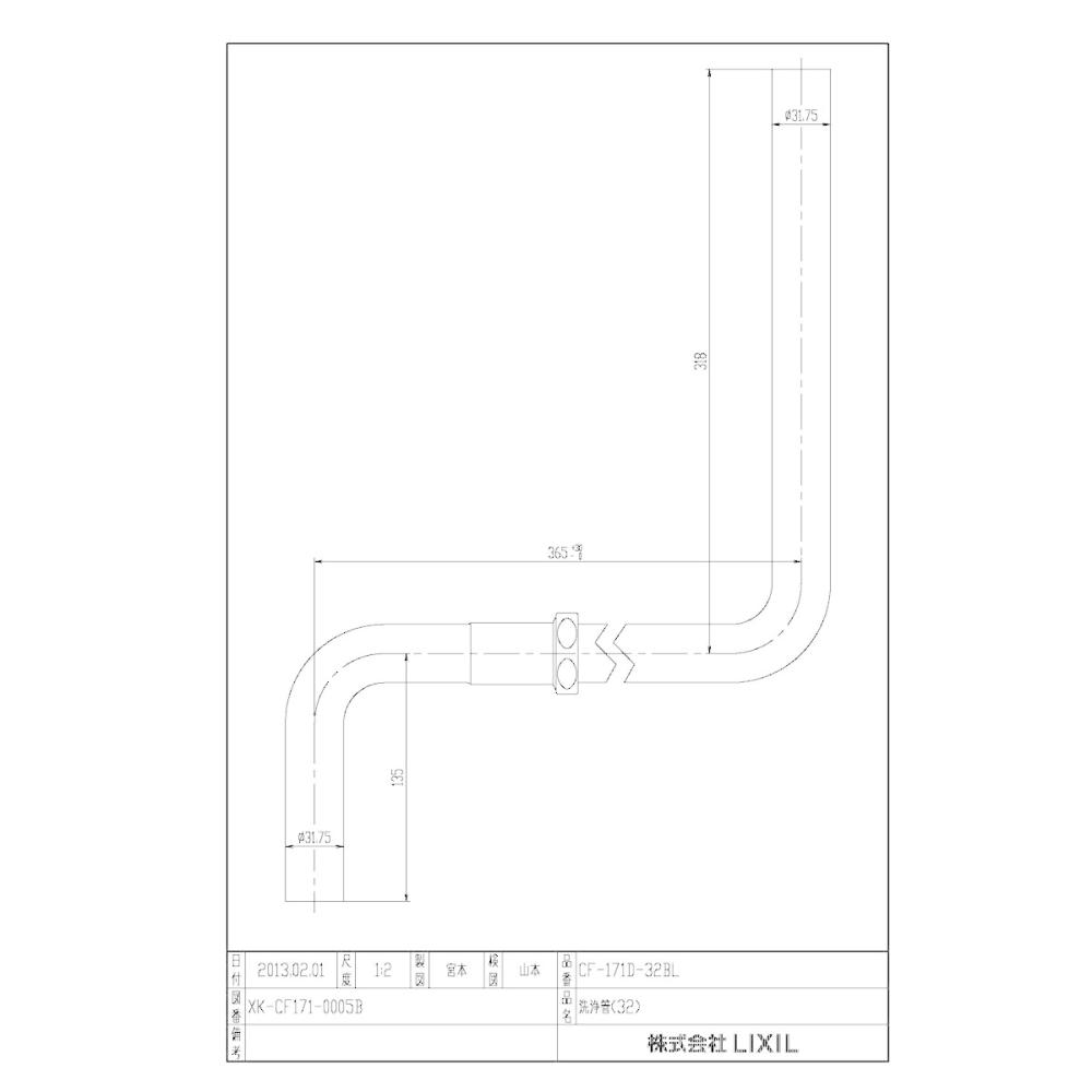 LIXIL 隅付ロータンク用洗浄管 CF-171D-32BL