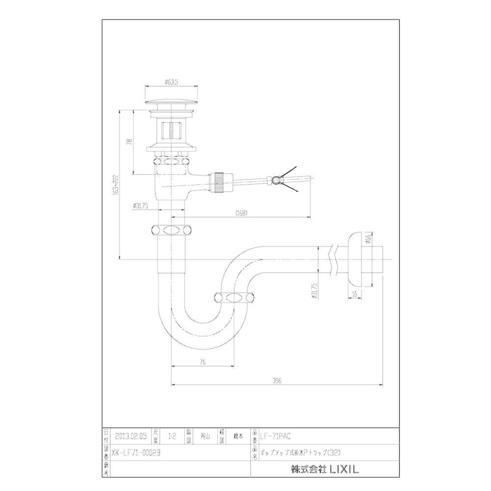 LIXIL ポップアップ式壁排水Pトラップ(排水口カバー付) LF-71PAC