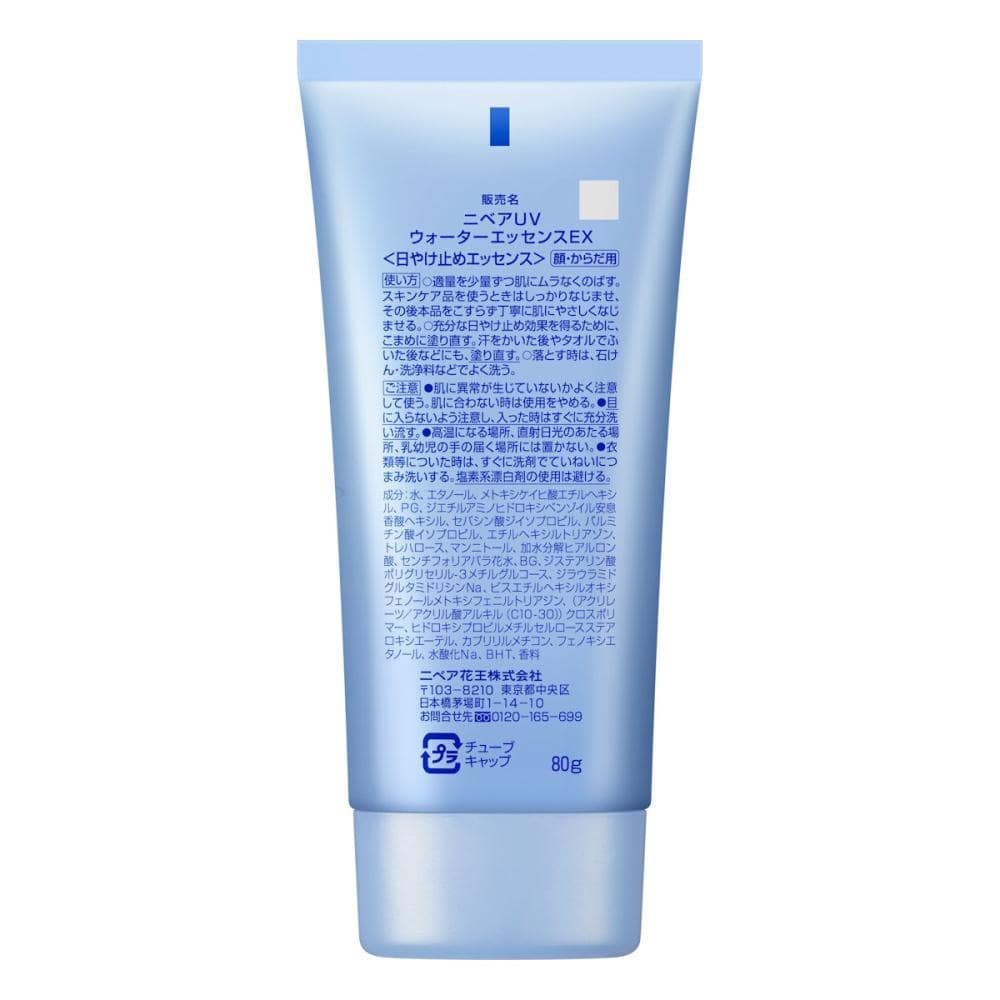 ◆日やけ・乾燥予防UV SPF50+/PA++++/UV耐水性★★ ◆圧倒的にみずみずしい使い心地*1。 エッセンスが顔の細かいパーツにもフィットし、消えるようにムラなくなじむ。 肌と一体化するような軽さで、べたつきが気にならない素肌っぽい快適なつけ心地。 ◆顔・からだ用 ◆スーパーウォータープルーフ ◆せっけんで落とせる *1ニベアUVシリーズSPF50+/PA++++製品内における使用感
