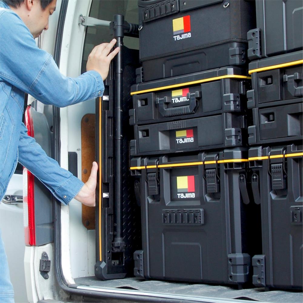 ●ハンドル背面部にセフホルダー(6個)機能を搭載 ●最大運搬可能重量100kg ●セフツールボックスシリーズと連結。荷締めロープが不要の荷崩れ防止設計 ●荷物を高積みしても手を挟まないガード型ハンドル ●外寸(使用時):高さ980×幅510×奥行804mm ●外寸(保管時):高さ108×幅510×奥行913mm ●重量:約11.8kg ●セフプレート付 ●荷崩れ防止仕様 ●折りたたみ仕様(ハンドル・タイヤ) ●ストッパー付