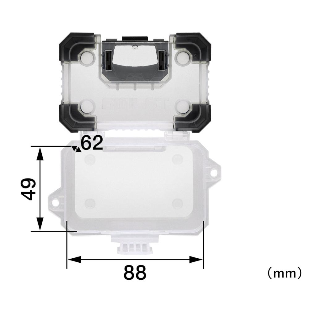 ●外寸:高さ83×幅117×奥行82mm ●内寸:高さ62×幅88×奥行49mm ●重量:約65g ●最大積載量:800g ●2way(セフホルダー・ベルト対応) ●材質(本体):PP樹脂