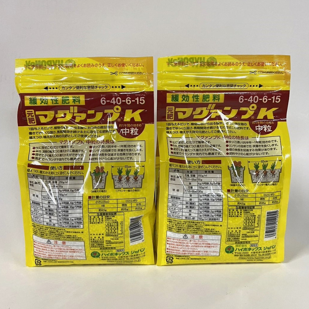 【マグアンプK中粒1.1kgの特長】 ●土に混ぜ込む緩効性の肥料でチッソ6%、リン酸40%、カリ6%、マグネシウム15%配合 ●1回与えるだけで、ゆっくり長く効きつづけ、植物の生育を良くします ●リン酸効果で丈夫な根をつくり、花・実つきを良くします ●草花、球根、野菜、観葉植物など、いろいろな植物に適しています