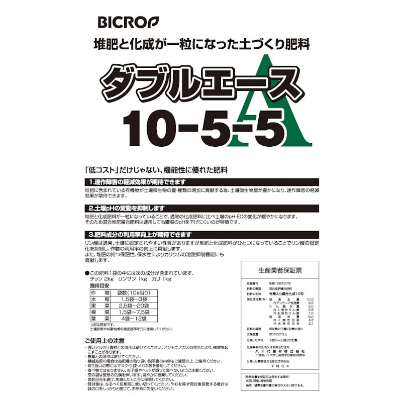 ●窒素:10 リン酸:5 カリウム:5 低PK(リン酸・カリウム)葉菜向け