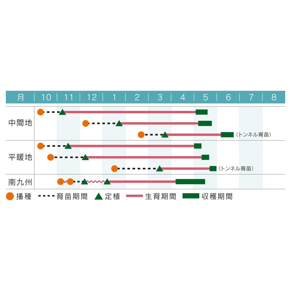 ◎ 秋まき早生タイプだが、黒葉系の濃緑色系品種なので寒玉の血が強く感じられる。