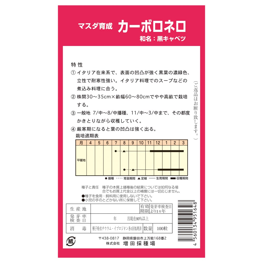◎イタリア在来系で、表面の凸凹が強く黒葉の濃緑色、立性で耐寒性が強い。