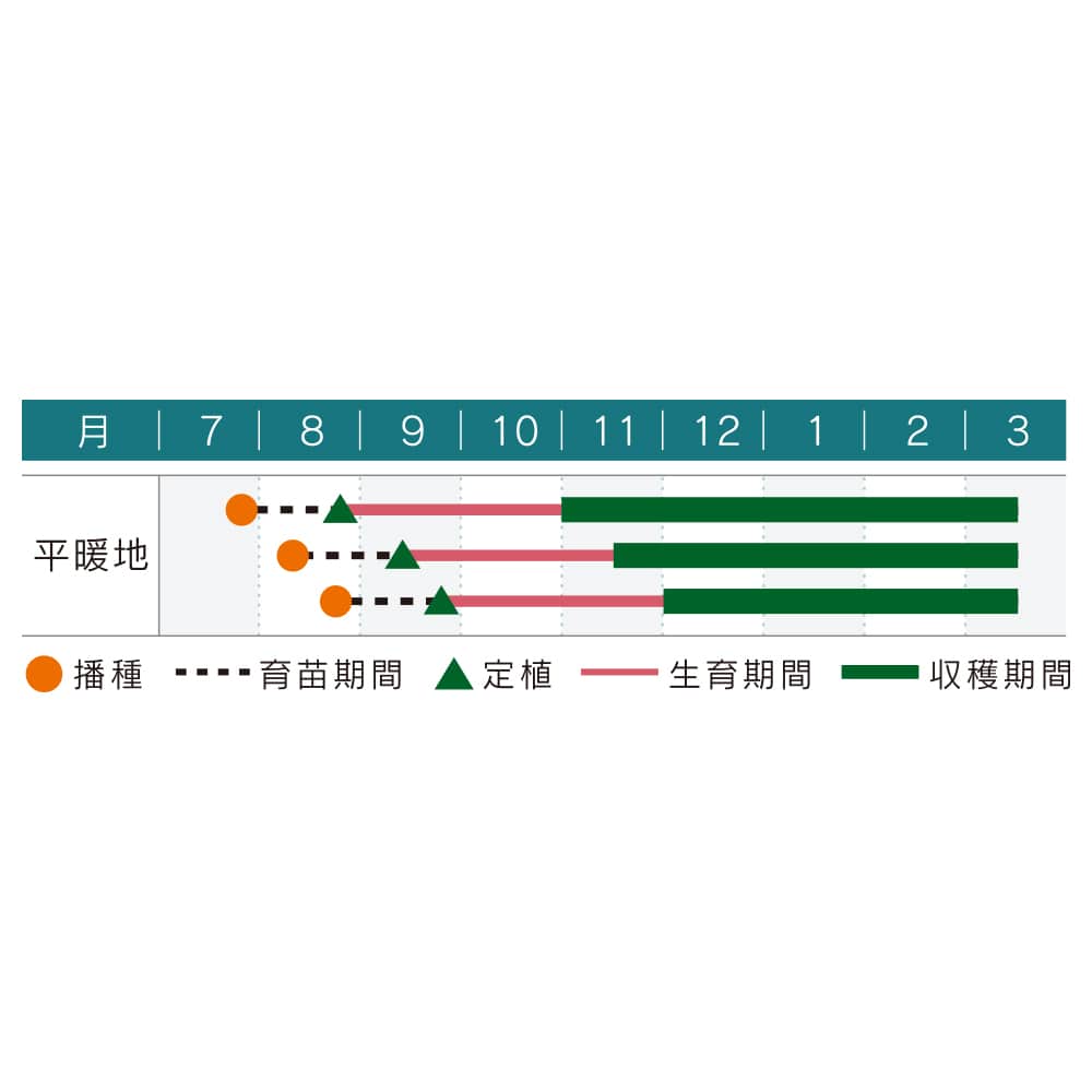 黒腐れ病や、べと病が発生する場合があるため発生初期に、適宜薬剤散布し、防除する。その際、非結球アブラナ科葉菜類の農薬を散布することをお勧めします