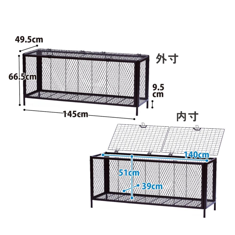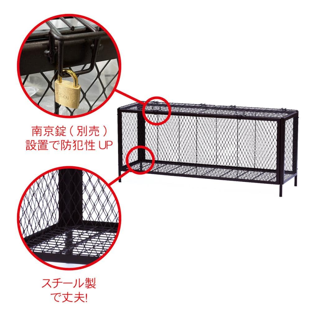 ■ニオイがこもらないメッシュ仕様。 ■紛体塗装仕上げで錆びにくく頑丈。 ■一般家庭にも馴染みやすいブラウンカラー 。 ■南京錠(別売り)を取り付けることができます。 ■別売りの部材を使用して、脚の高さを上げることができます。