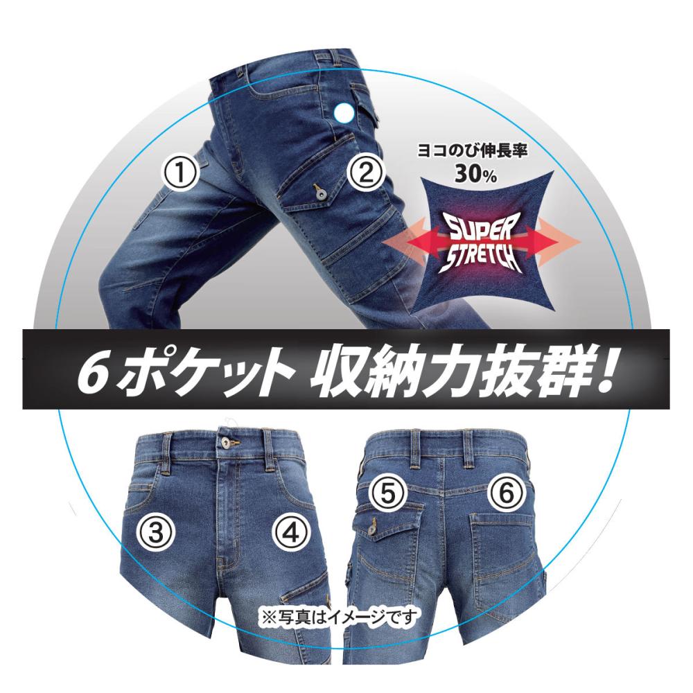 ●スーパーストレッチ、ヨコのび伸長率30% ヨコもタテもよく伸びて、動きやすい ●立体裁断 体のラインに合わせて製法なのでさらに動きやすい ●ウエストリブ 伸びてフィット、脱ぎ履きもしやすい ●ポケット6個、収納力抜群 前2個、後2個、両もも2個、計6個 ●レギュラー フィット 太ももとシート部分にゆとりのある、ストレートのシルエット ●程よいハリ感と滑らかな手触り ●YKKファスナー使用 【組成】 ・綿82%、ポリエステル16%、ポリウレタン2%