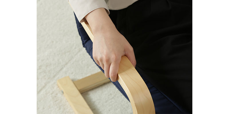 ゆるやかな傾斜で腕を自然なかたちでのせることができます。握りやすく力をかけやすいので立ち座りにも便利です。