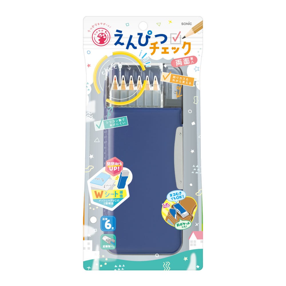 ソニック えんぴつチェック両面筆入 うかサポ 紺