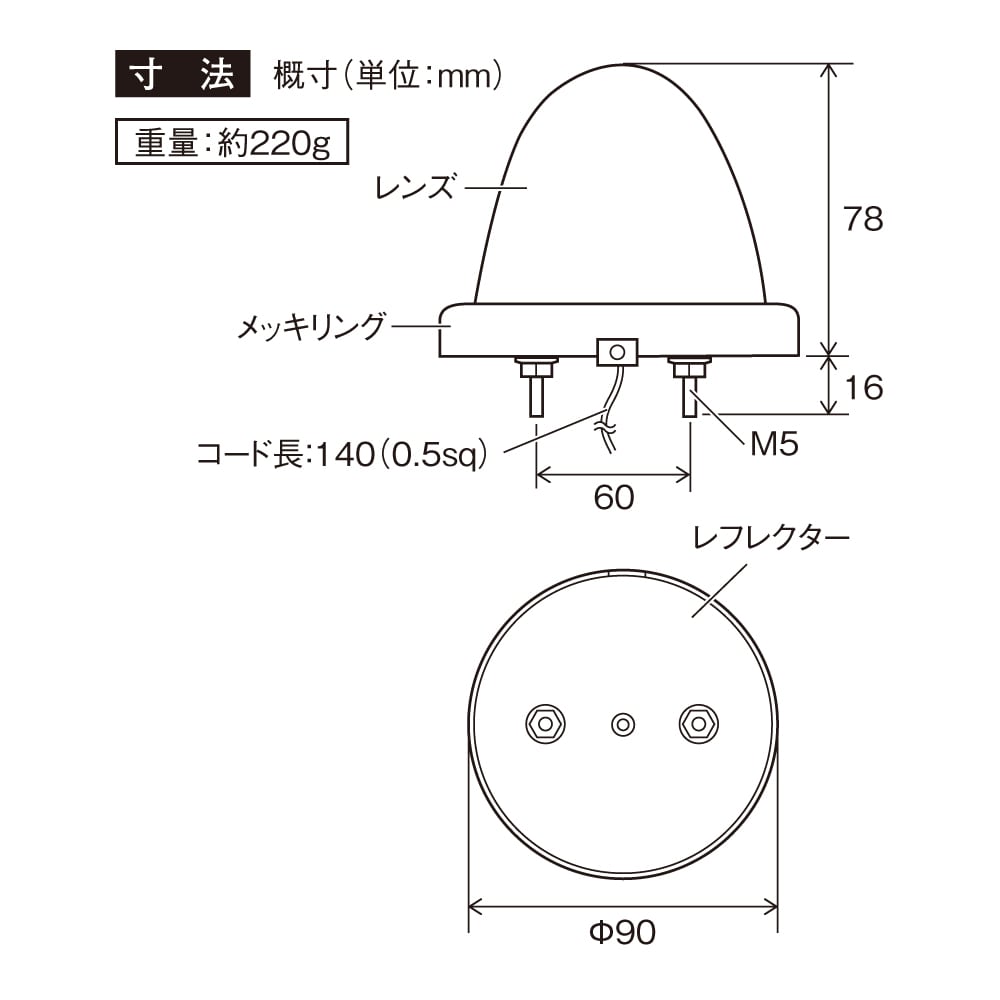 ・美しく存在感ある光をインナーレンズ全体から発光させる特殊導光板を採用したポイントマーカーです。 ・発光面が大きく存在感抜群です。 ・主材質:[本体]:ABS/[リング]:ABS(クロームメッキ)/[レンズ]アクリル ・定格電圧範囲:DC21-32V ・全光束:約129lm ・定格電流(DC28V時):約50mA ・付属品:フランジナットM3(2個)、平ワッシャーM3(2個)