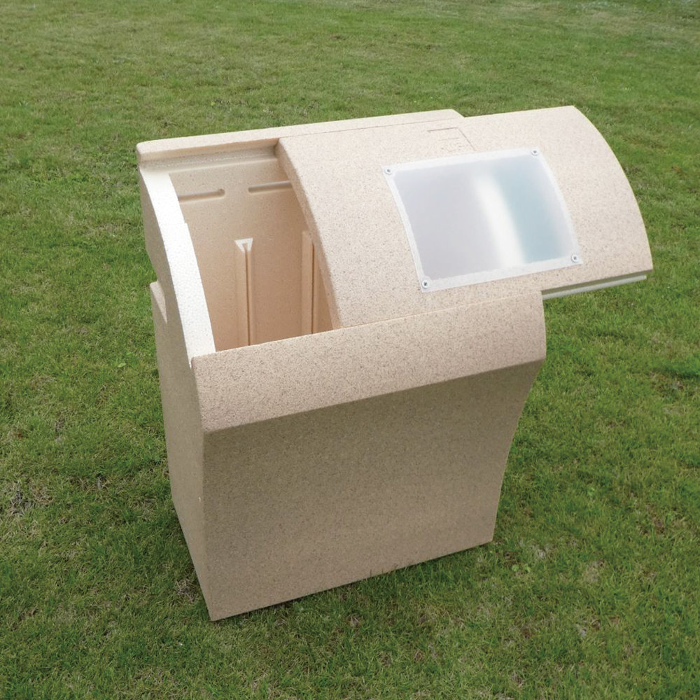 ◇製品サイズ◇ ・外寸:約380×560×高さ760mm ・製品重量:約1.5kg(土無し) ◇材質◇ ・本体:ポリスチレン・ブタジエンゴム ・ブロック:ポリスチレン ・窓:PET ・取付ねじ:ナイロン ◇お取り扱い上の禁止事項◇ 以下の内容は本体が破損するので絶対に行わないでください。 1.オレンジジュースなどの柑橘系ジュースの投入(オレンジの皮に含まれるリモネンは発泡スチロールを融かします。) 2.食用油の投入。 3.有機溶剤の投入。 4.周辺での火気の使用。 5.踏み台のように本品に乗る、あるいは大きな荷重をくわえる。 ◇塗り直しについて◇ ・表面を塗りなおす場合は、水性塗料をお使いください。(油性塗料を使用すると本体が解ける場合がございます。絶対に使用しないでください。) ◇その他 ・本品をプランターで使用する場合は、直射日光が当たる本体庫内側は、あらかじめ水性塗料で、お塗り頂くようお願い致します。