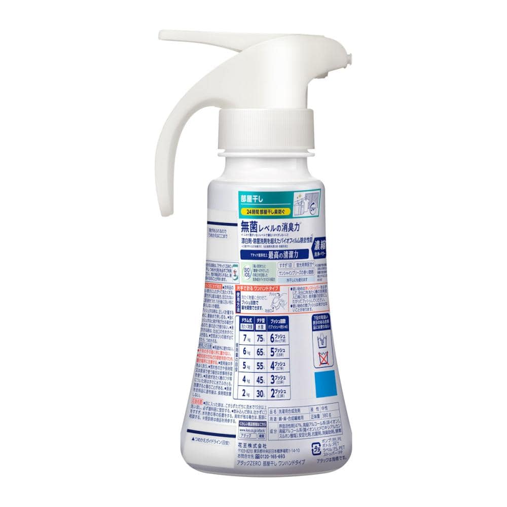 片手でかんたん計量。ワンハンドプッシュで直接塗布。 アタック液体史上 最高の清潔力。 無菌レベルの消臭力※1。 濃縮洗浄パワー。 漂白剤・除菌洗剤を超えたバイオフィルム除去を達成※2。 24時間部屋干し臭防ぐ。 ※1ニオイ菌がいないレベルで嫌なニオイがしないこと。 ※2菌が作り出す多糖汚れ 花王社酵素系漂白剤・除菌洗剤
