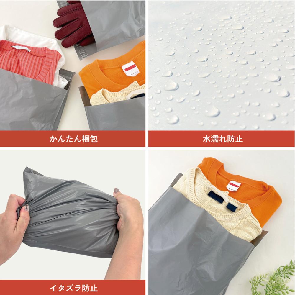 どなたでも簡単に梱包ができて、中身が透けない安全性に優れたビニールバッグです。簡単梱包、水濡れ防止、強力テープでイタズラ防止。小物や雑誌、衣類などの梱包に最適です。