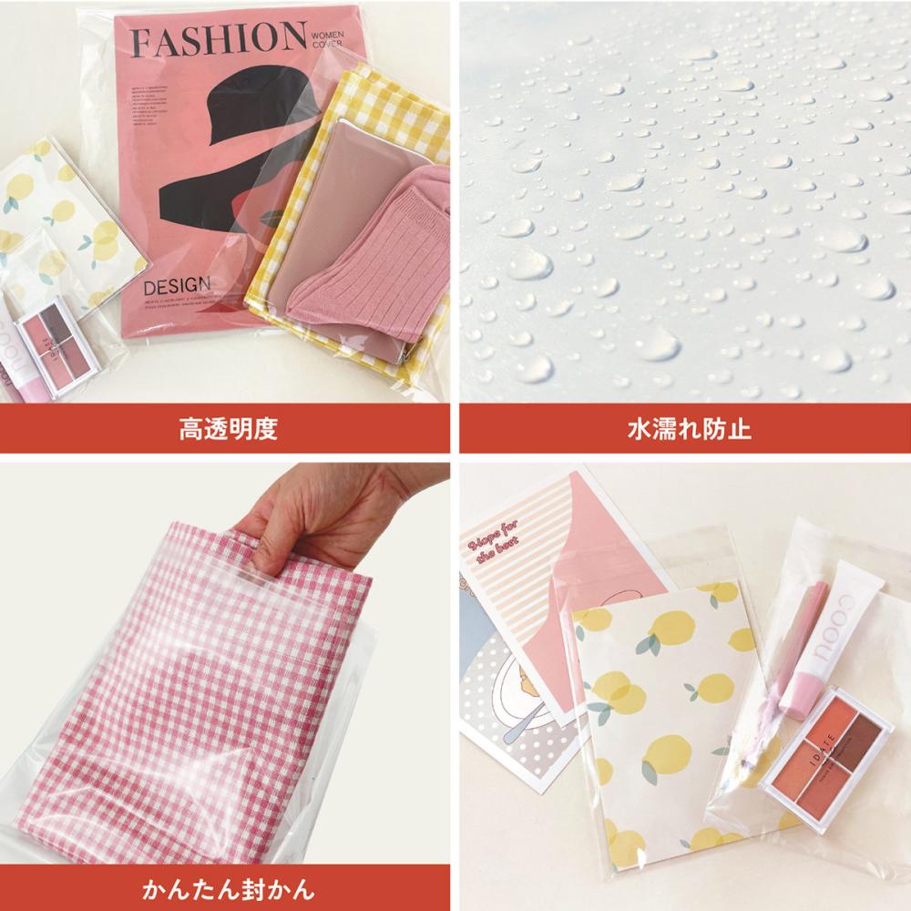 荷物の小分けや、大切なものの保管などに便利な透明袋です。高透明度、水濡れ防止、簡単封緘のテープ付きです。ポストカードや化粧品、アクセサリーなどの梱包、保管に最適です。