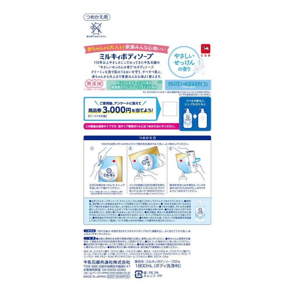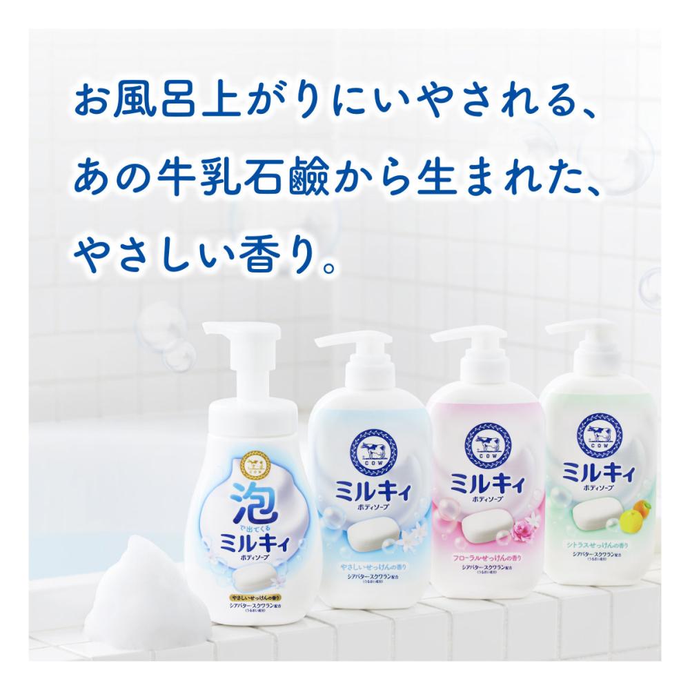 110年以上やさしさにこだわってきた牛乳石鹸のやさしいせっけんの香りのボディソープ。 クリーミィな泡で肌のうるおいを守り、すべすべ肌に。 赤ちゃんから大人まで家族みんな心地良く使えます。 シアバター・スクワラン(うるおい成分)配合。 たっぷり使える超特大サイズ。