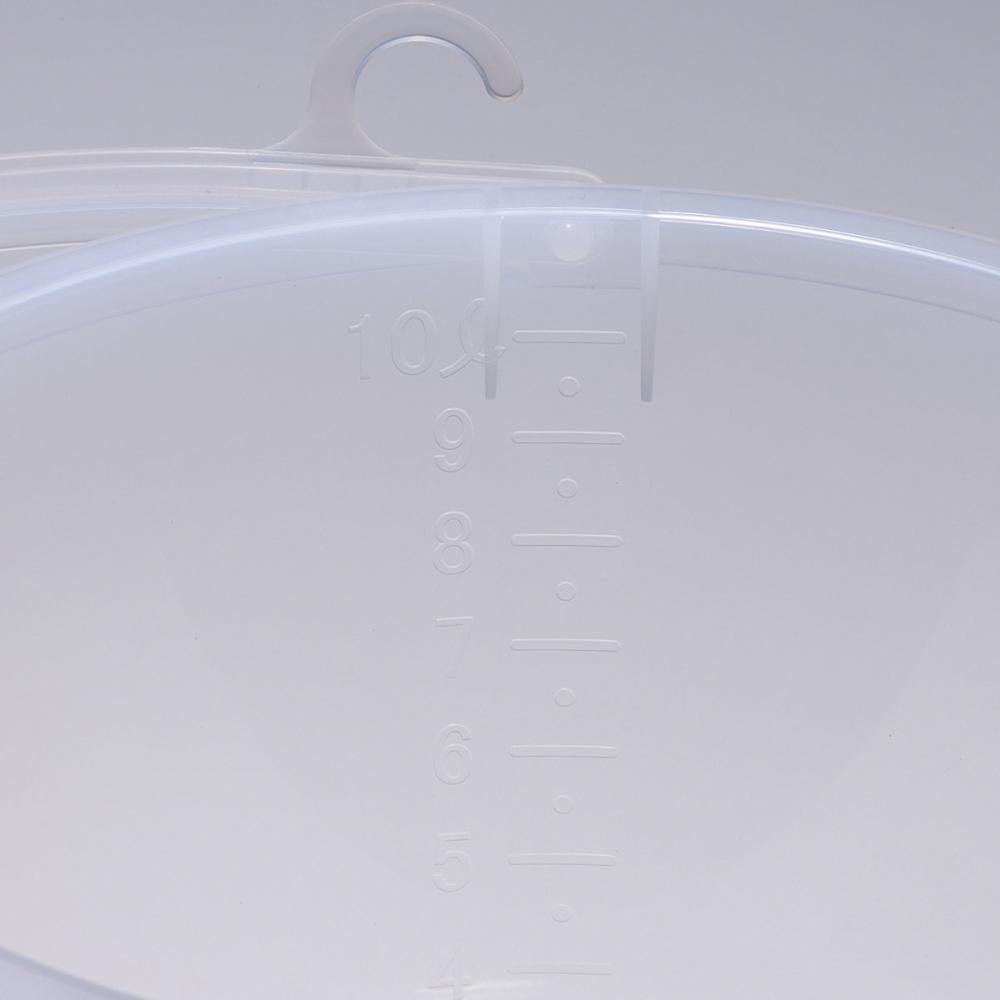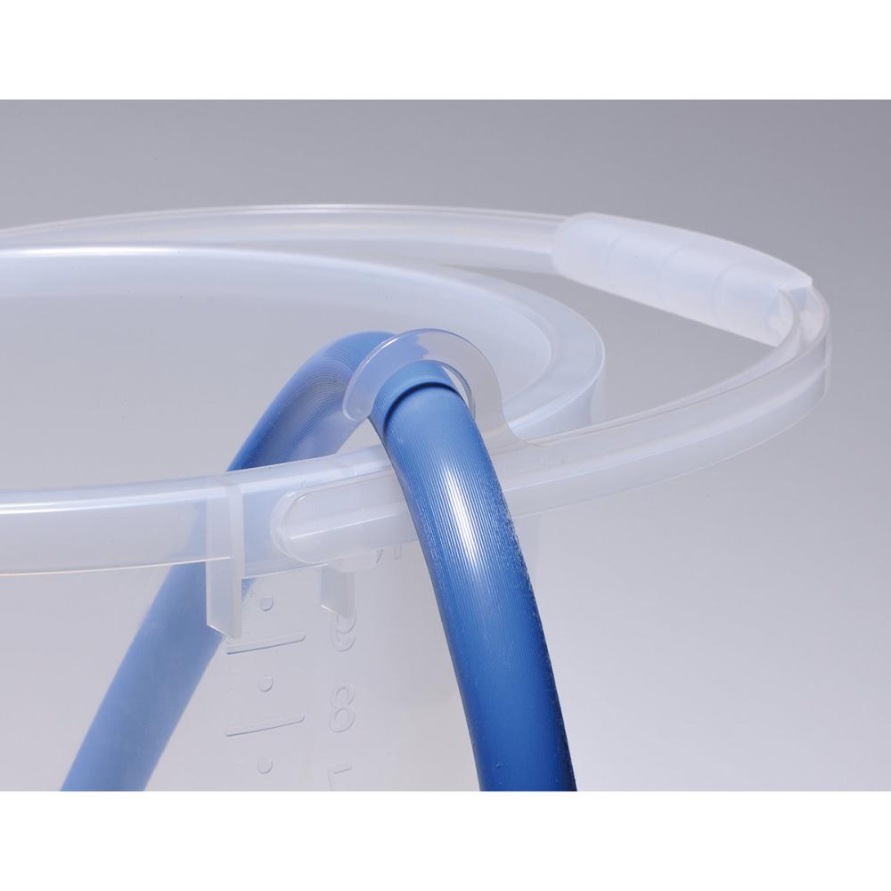 注ぎやすい口形状、ホースかけ、本体に計量メモリ、底部に注ぎやすい取手など便利な機能が様々ついたバケツです。