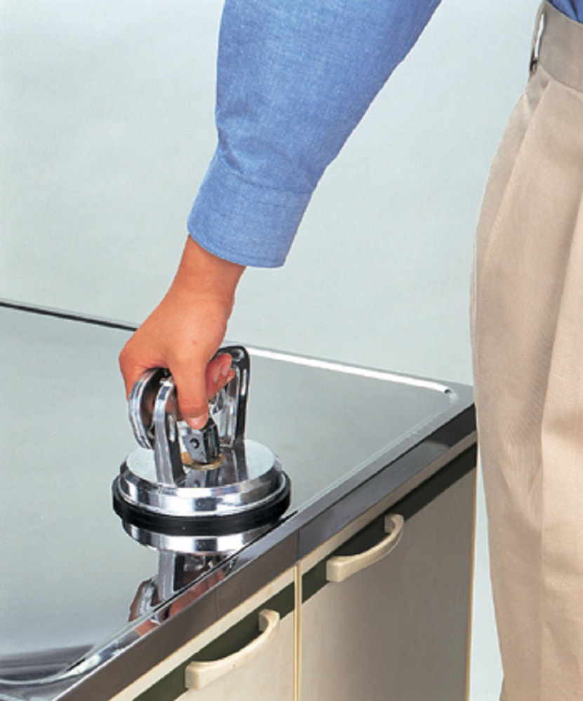 持ちにくい物に吸着させ、使用するハンド吸着盤 ■吸着力:25kgまで ■吸着面のサイズ:直径123mm ■本体・レバー:アルミ ■吸着面:ゴム