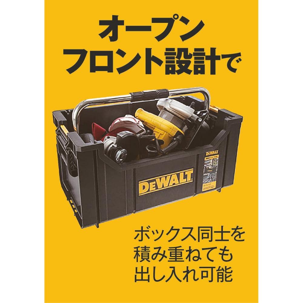 "●タフシステムシリーズとの連結、ブラケットを利用した収納で移動に便利 ●最大積載20Kg ●スタッキングラッチ ●DSセンターロック対応 ●ブラケット収納対応 ●フォールディングメタルハンドル ●2WAYハンドル ●オープンフロント設計 ●ドレインホール ●素材:PP/ Metal *デウォルトTOUGH SYSTEM(タフシステム)同士での連結が可能 ※別売りのアダプター(DWST08017)使用によりT-STAK(ティースタックシステム)との連結も可能になります。"
