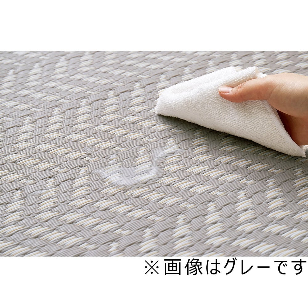 ■PP素材なので汚れてもさっと水拭きできてお手入れ簡単。 ■い草よりも色褪せもしにくく丈夫で長持ち。 ■引っかき傷にも強く、お子様やペットのいるご家庭でも安心。アウトドアにもおすすめです。 ■大人かわいいパステルカラー。地味になりがちな和室も明るい雰囲気に。 ■畳やフローリングの上に敷くだけで簡単に模様替えできます。 ■筋が入ったパイプで肌に密着せず、汗ばむ季節もベタつかず快適に。 ■パイプ内の空気層による保温効果で床からの冷気を軽減。夏は涼しく、冬は暖かくオールシーズンお使いいただけます。 ※裏張りなしで両面お使いいただけます。 ※お掃除ロボット対応。(機種や使用状況によっては対応できない場合がございます。) ※フローリングに使用される場合はすべり止めと併用してお使いくだだくことをおすすめします。 ※畳の上でご使用になる場合は、上敷き鋲で固定してお使いください。