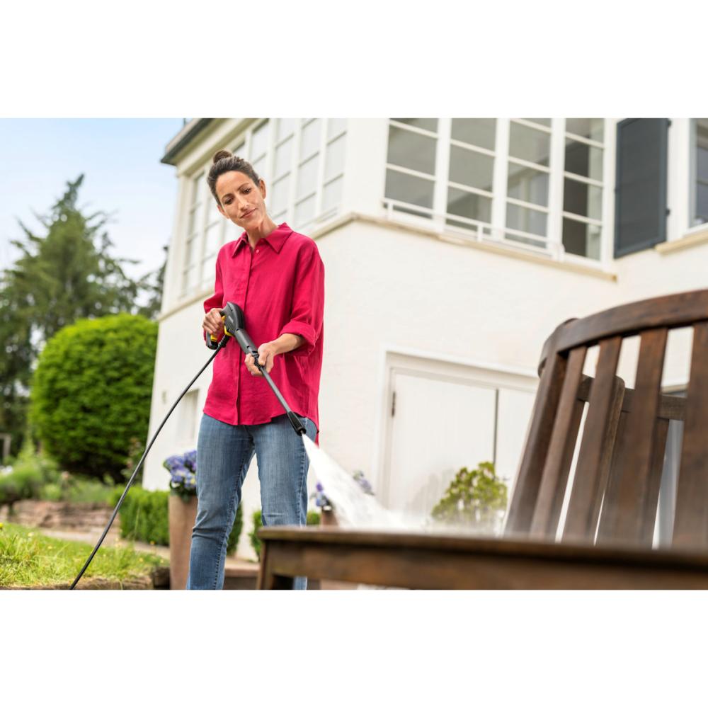 "●付属のワンジェットノズルから出る広角の水が、いろいろな対象物を洗浄します。 ●軽量で一体型ハンドルのおかげで、移動も簡単便利。 ●クイックコネクトシステムであっという間のシンプル簡単操作を実現。 ●ガンやノズル、電源ケーブルも本体に収納できスマートに保管ができます。"