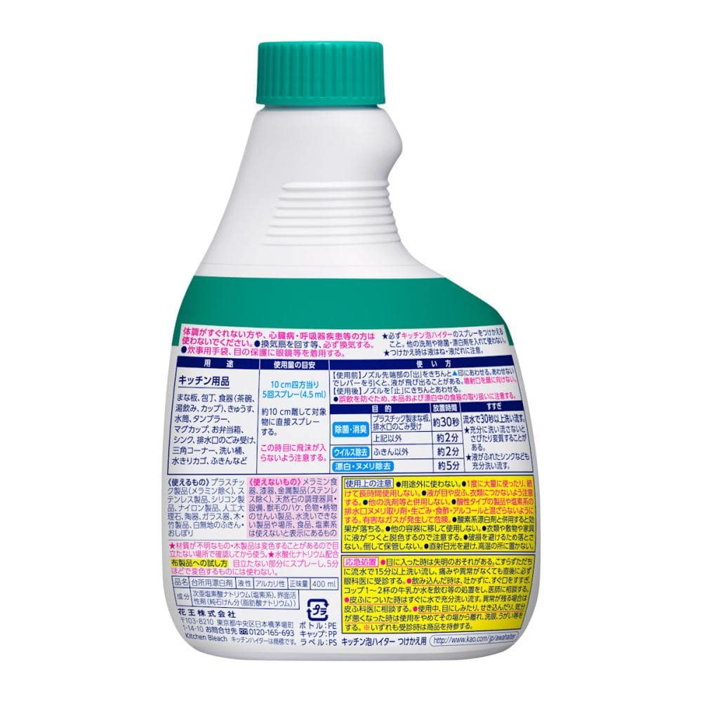 キッチンハイター内最強漂白力*! スプレーで手軽に除菌※・漂白・消臭ができる台所用漂白剤です。 除菌※・消臭なら2分、漂白・ヌメリ除去なら5分放置して流すだけ。 まな板・包丁・排水口のごみ受け・食器・ふきんが、こすらずキレイに。 *標準使用方法で比較 ※すべての菌を除菌するわけではありません。