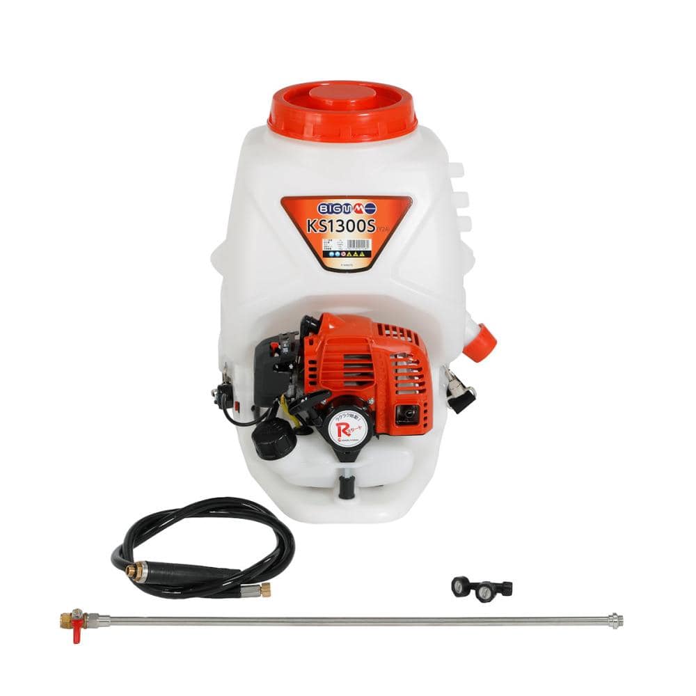 エンジン始動方式は、軽くリコイルが引けるRスタート方式(紐を引っ張ってエンジンをかける方式) 女性の方でも、簡単にエンジンが始動出来ます。 ●排気量:22.5cc ●タンク容量:13L ●燃料タンク:0.5L ●燃料2サイクルエンジン用混合燃料(FC,FD級2サイクルオイル50:1) ●最高圧力:~0.8MPa ●吸水量:0.5~6.0(L/min) ●最長運転時間:約50分 ●付属品:説明書、保証書、ホースマトメ1本、ノズルパイプ(コック付き)1本、2頭口ノズル1個 ●点火プラグ:チャンピオン CJ8Y相当 ●【希釈倍率】※タンク内水量13Lに対して 〇50倍 →薬剤量260mL 〇100倍→薬剤量130mL 〇200倍→薬剤量 65mL 〇500倍→薬剤量 26mL