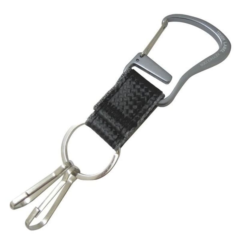 【仕様】 ■色:チタン ■ショートストラップ付 【材質】 ■カラビナ:アルミニウム ■ストラップ:合成皮革・ポリエステル ■キーリング部:鉄(メッキ)