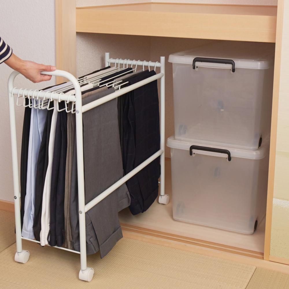 幅30cmのスリムサイズで押入れでも場所をとりません。キャスター付きで出し入れ簡単。