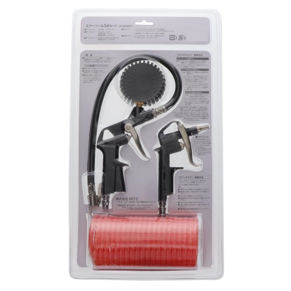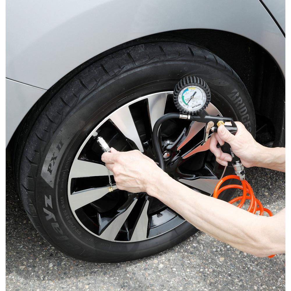 【用途】 エアーコンプレッサーと接続して、自動車やバイク、自転車のタイヤの空気圧チェックと空気入れ、ゴミやほこりの吹き飛ばし等に使用します。 ●タイヤチャック 圧力測定800kPaまで ●エアーダスター 射出口径2.0mm 空気使用量90L/分 最高使用圧力600kPa ●エアコイルホース外径8mm×内径6mm×長さ5m 最高使用圧力1500kPa 【対応バルブ】 1.クリップタイプチャック「米式」バルブ付き自動車用マウンテンバイクやクロスバイク、BMXでも使われています。 2.自転車用ノズル「英式」バルブ付き街乗り自転車用 【接続ネジタイプ】ホース/ガン本体G1/4(PF1/4管用平行ネジ) ガン本体/プラグM11xP1.0mm