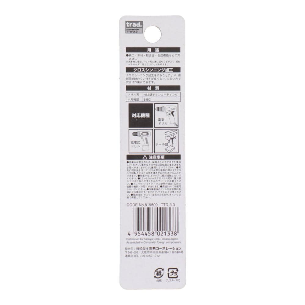 【用途】鉄工・木工用 【材質】●ドリル刃:HSS鋼チタンコーティング●六角軸部:S45C 【シャンク形状】六角軸6.35mm 【適応機種】●電動ドリル●充電式ドリル●ボール盤