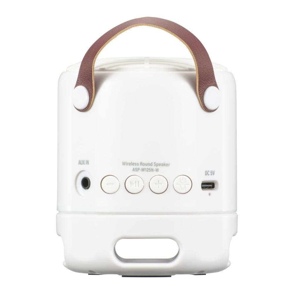 ・口径52mmフルレンジスピーカー搭載 高音質フルレンジスピーカーを上面に配置することにより、どんな空間に置いても広がりある立体的なサウンドを響かせます ・低音強調パッシブラジエーター搭載 内蔵したパッシブラジエーターが、電磁気回路スピーカー(中音域)の振動を受けて、厚みのある低音域を再現 ・True Wireless Stereo対応 ※本機2台が必要です ・ 本製品2台をペアリングすることで、さらに重厚で広がりのある本格的なステレオサウンドを楽しめます ・ワイヤレスで音楽再生 Bluetooth正規ライセンス品(Bluetooth標準規格 Ver.5.3) ・ AUX IN端子搭載 ・ USB-C充電式専用コード付属 ・電源:DC5V 300mA(USB-C給電) ・内蔵バッテリー:充電式リチウムポリマー電池(3.7V 800mAh) ・実用最大出力:3W ・再生周波数帯域:150Hz~17kHz ・スピーカー:口径52mm(4オーム)フルレンジ×1、パッシブラジエーター×1 ・SN比:≧80dB ・接続端子:外部音声入力(直径3.5mmステレオミニジャック) ・通信方式:Bluetooth標準規格Ver.5.3(TWS機能搭載) ・対応プロファイル:A2DP、AVRCP ・変調方式/周波数帯域:GFSK/2.402~2.480GHz ・最大通信距離:見通し約10m(Class2) ・充電時間:約3.5時間(残量ゼロからフル充電まで) ・連続再生可能時間:約14時間(50%音量) ・許容動作温度/湿度:温度…0~40℃、湿度…20~80%(結露なしにて) ・外形寸法:幅75×高さ91×奥行75.5mm(ハンドル・突起物を除く) ・質量:約258g ・付属品:専用充電コード、保証書、取扱説明書