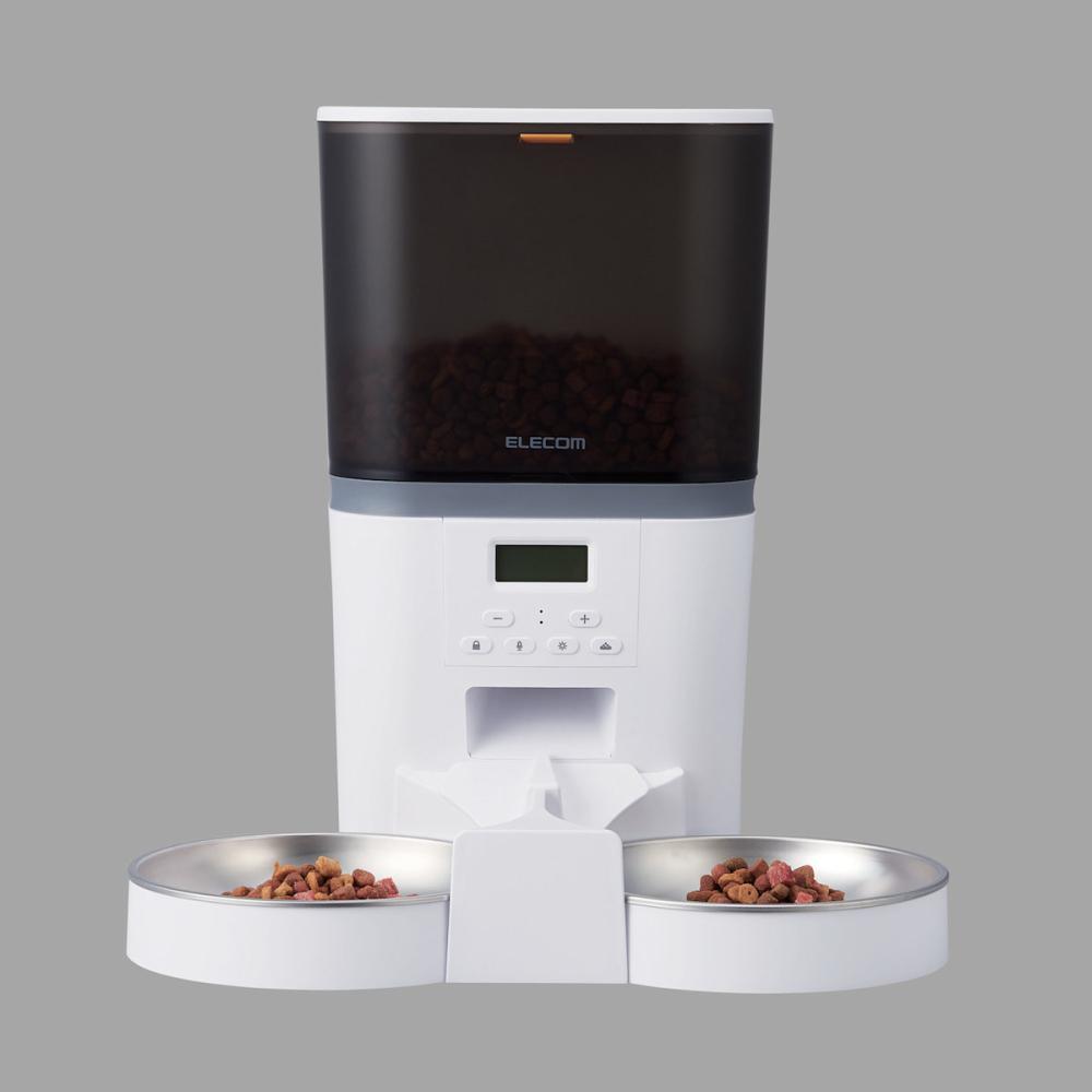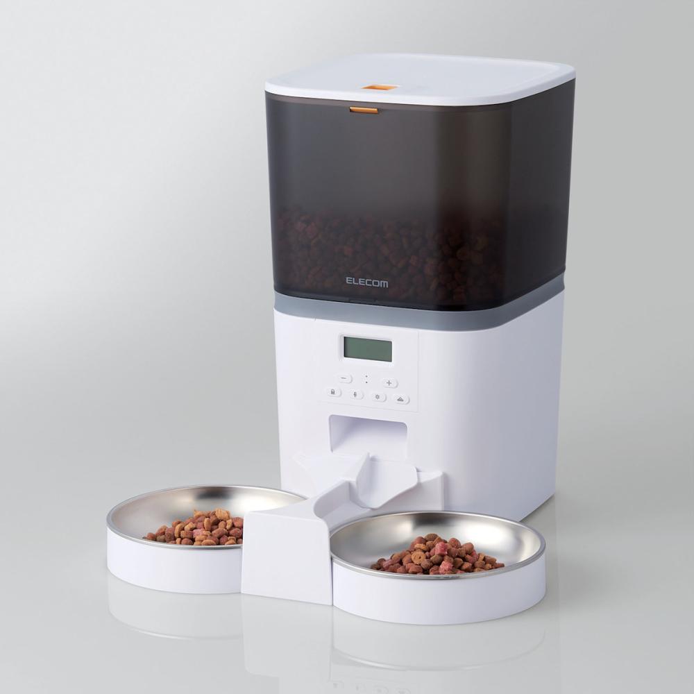 タンクは約6Lと大容量。旅行や出張などで不在が続くときでも、ごはんをたっぷりストックしておけます。多頭飼いでも安心の2皿タイプ。