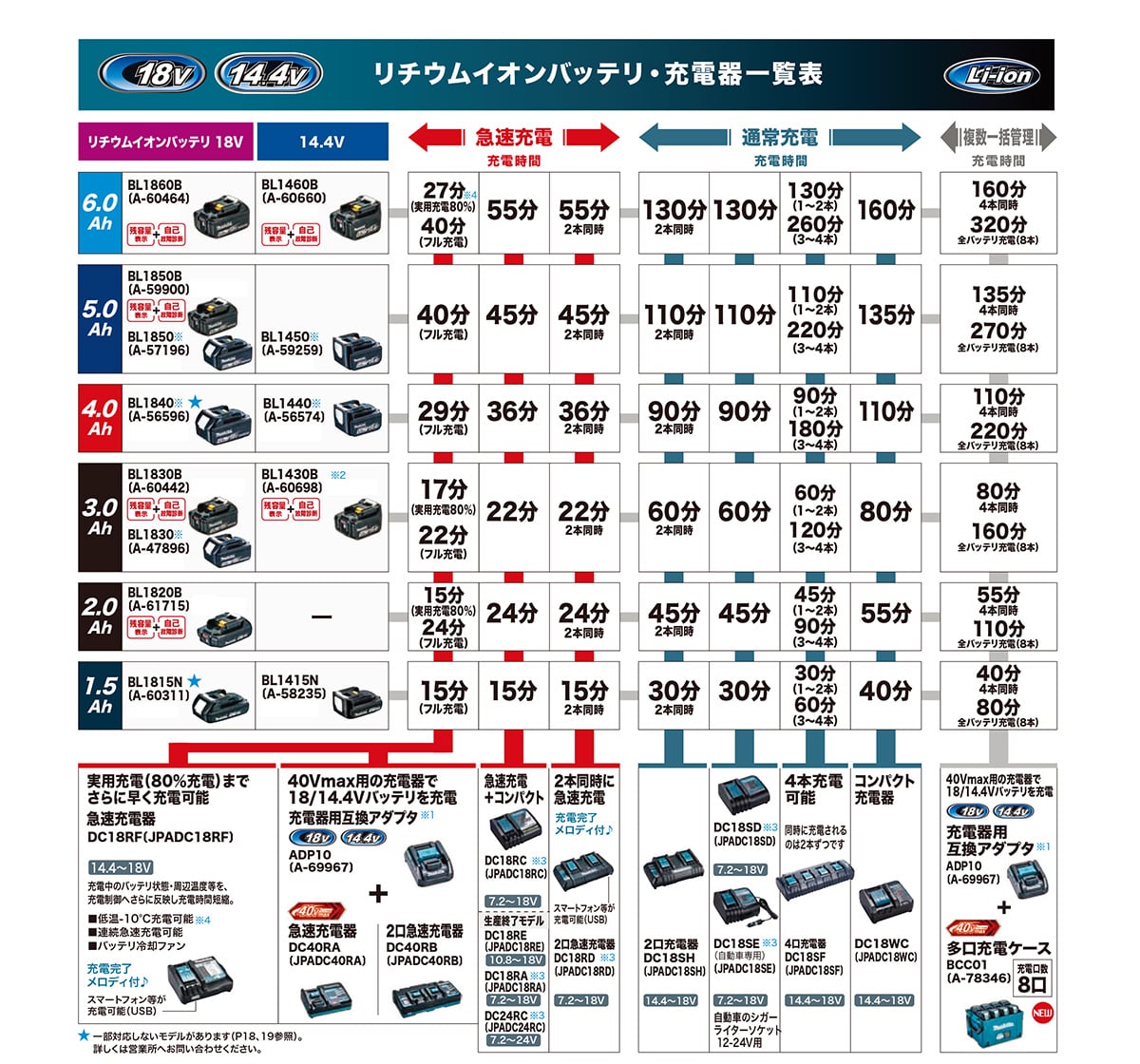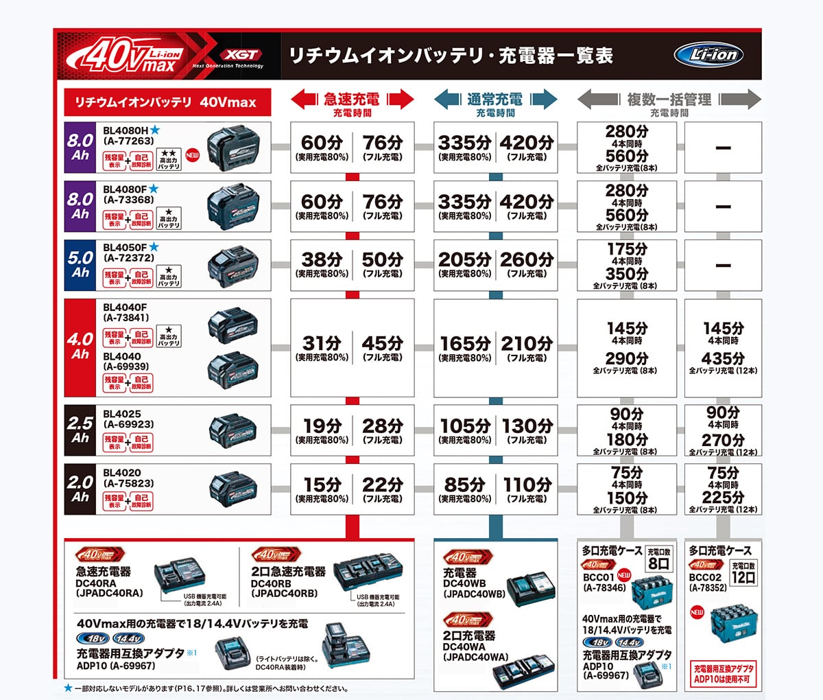 ●バッテリBL4040F×2本・急速充電器DC40RA・マックパックタイプ2