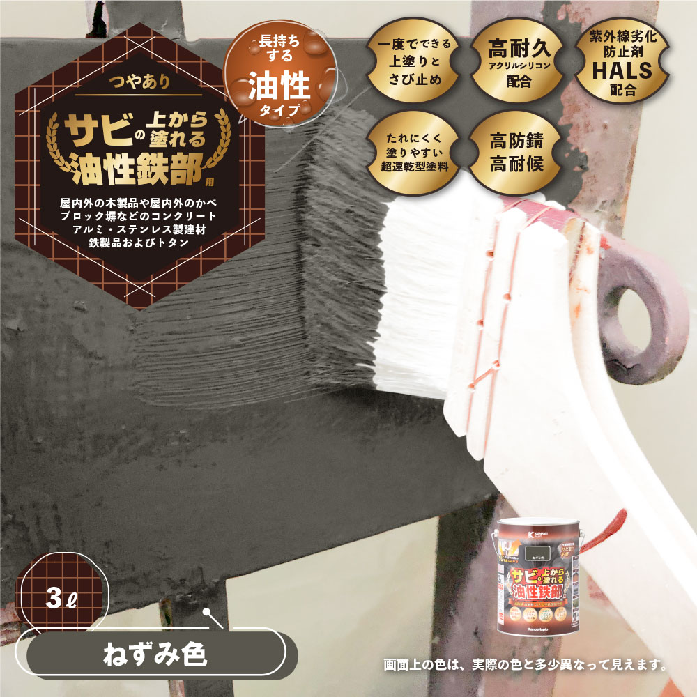 ●強力防サビ剤が防請効果を発揮し、サビ止めと上塗りが時にできます。 ●たれにくく塗りやすい速乾型塗料なので作業性が抜群です。 ●用途:鉄製品およびトタン(門扉・フェンス・物置など) アルミ・ステンレス製建材(サッシ・カーポートなど) 屋内外の木製品(板べい、ドア、ガーデニング用品など) 屋内外のコンクリート(屋内外のかべ、ブロック塀など) ●乾燥時間:20℃:約1.5時間(塗り重ねる時は5時間以上) 冬期:約4時間(塗り重ねる時は8時間以上) ●塗り面積(1回):24~33m2(タタミの広さで約18枚分) ●危険物分類:一般色非危険物(指定可燃物)