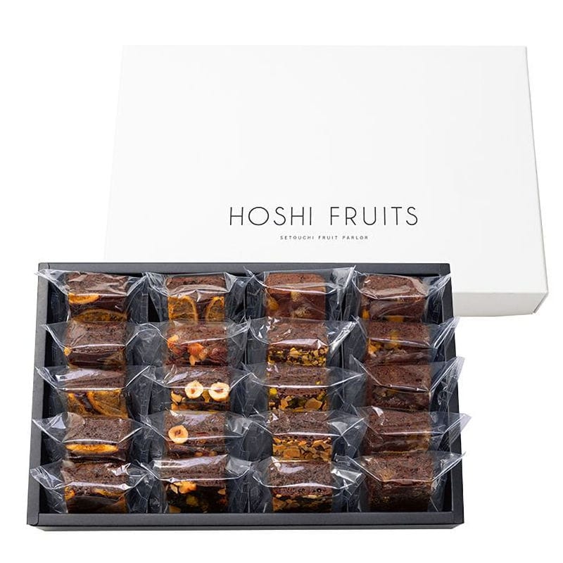 濃厚なチョコレートの生地に、香ばしいナッツや甘酸っぱいフルーツをトッピング。ピスタチオとアーモンド、ごろっとしたパイナップルやネーブル、たっぷりのドライフルーツとナッツ…。おいしさをぎゅっと詰め込んだキューブが、お口に小さなしあわせをお届けします。