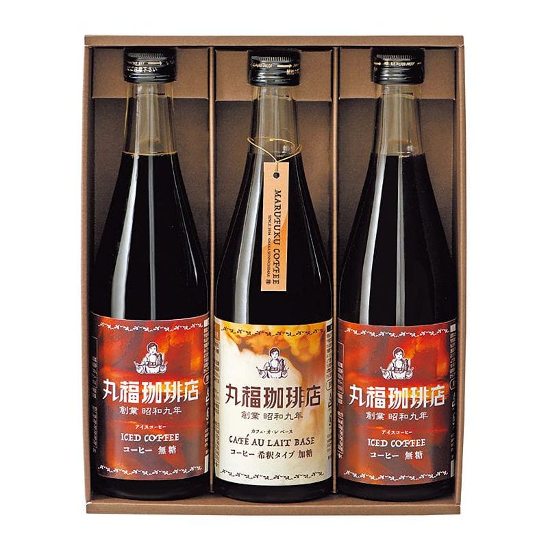 昭和9年創業の大阪「丸福珈琲店」のこだわりは、「濃厚でコク深い味わいだがあと味のすっきりとした珈琲」。まずはすっきりストレートで丸福珈琲店ならではの味わいを楽しんで、たまには牛乳をたっぷり入れて優しい甘みの濃厚なカフェオレを。こだわりを守り続ける丸福珈琲店がお届けする、オリジナルブレンドのアイスコーヒーと、牛乳で割って楽しむ甘みあるカフェオレベースのセットです。