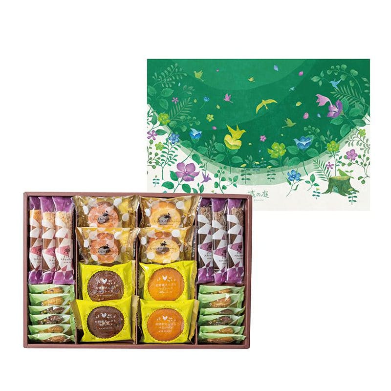 美しい森の中で、色とりどりの花たちと鳥たちがさえずる、森の詩のお菓子。切り株のしっとりバーム、森の枝のさくさくパイなど、森の詩を奏でる焼き菓子を、色鮮やかに描かれた不思議の森のデザインボックスに詰め込みました。受け取った瞬間に心の中に現れる癒しの場所と素朴で優しいスイーツをお届けします。