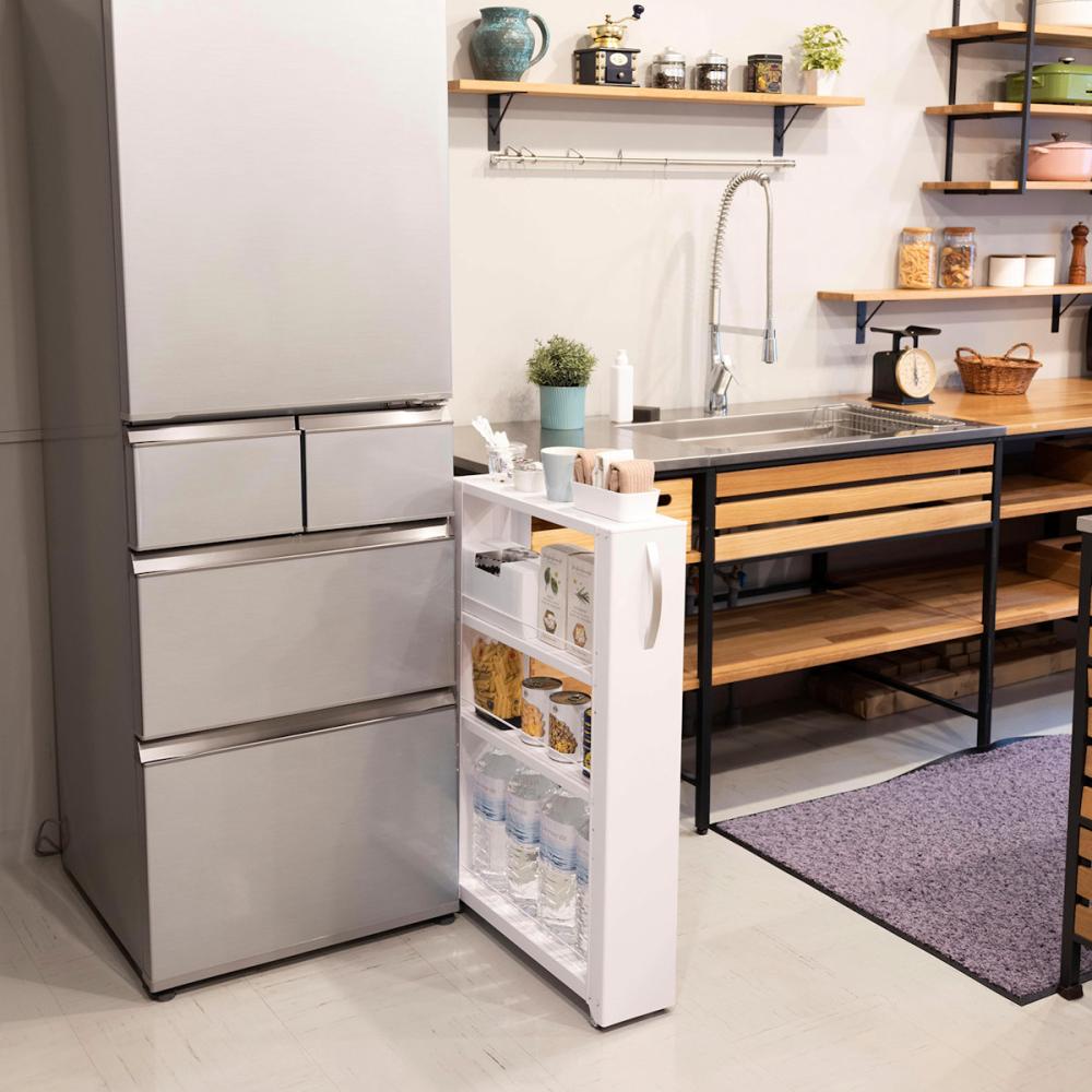 取っ手とキャスターで隙間からの出し入れがスムーズ!