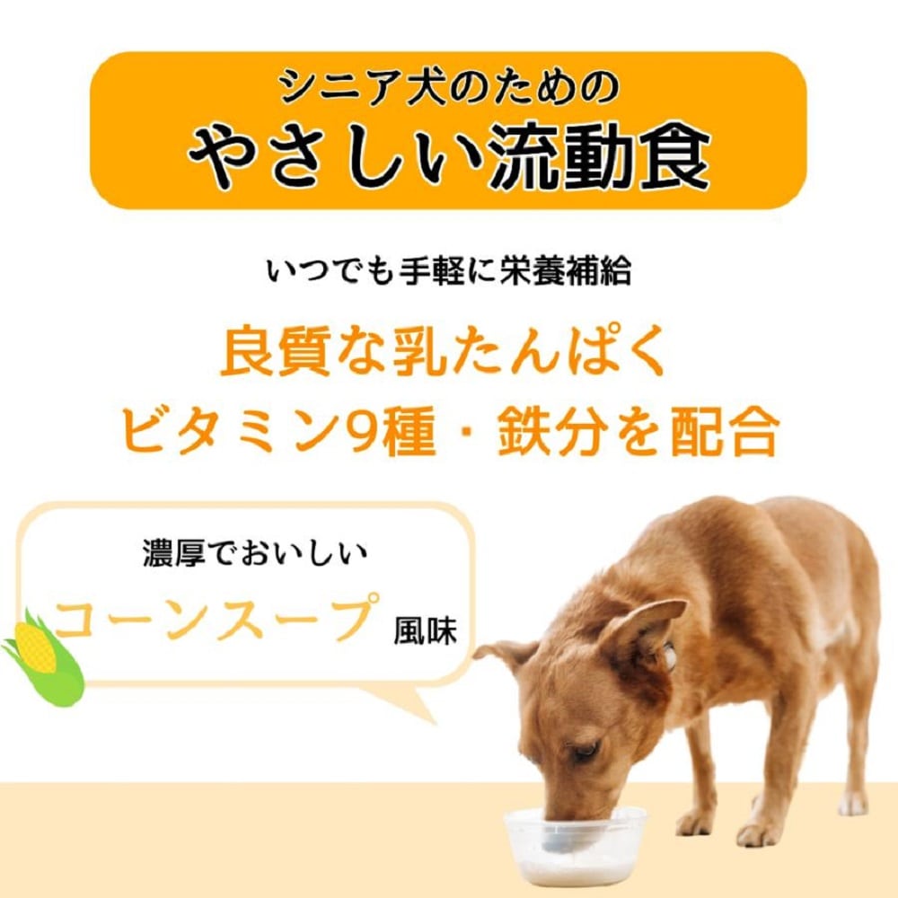 愛犬に必要なビタミン、ミネラル等の栄養素を与えられる流動食。オリゴ糖がお腹の環境を健康に保つ。