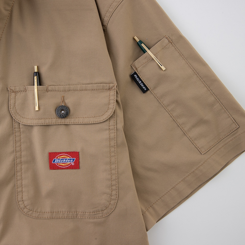 左胸ペン差しポケット 幅広の左袖マルチポケット 右脇ベルトループ下部カラビナループ付き 腰後に夜間の視認性を高める反射テープ付き