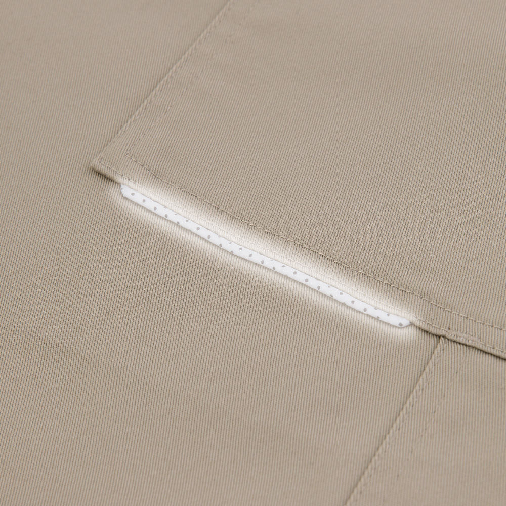腰後ろポケット部に反射パイピング付き 両サイドにウエストサイズを調節できるアジャスター(ボタン)付き