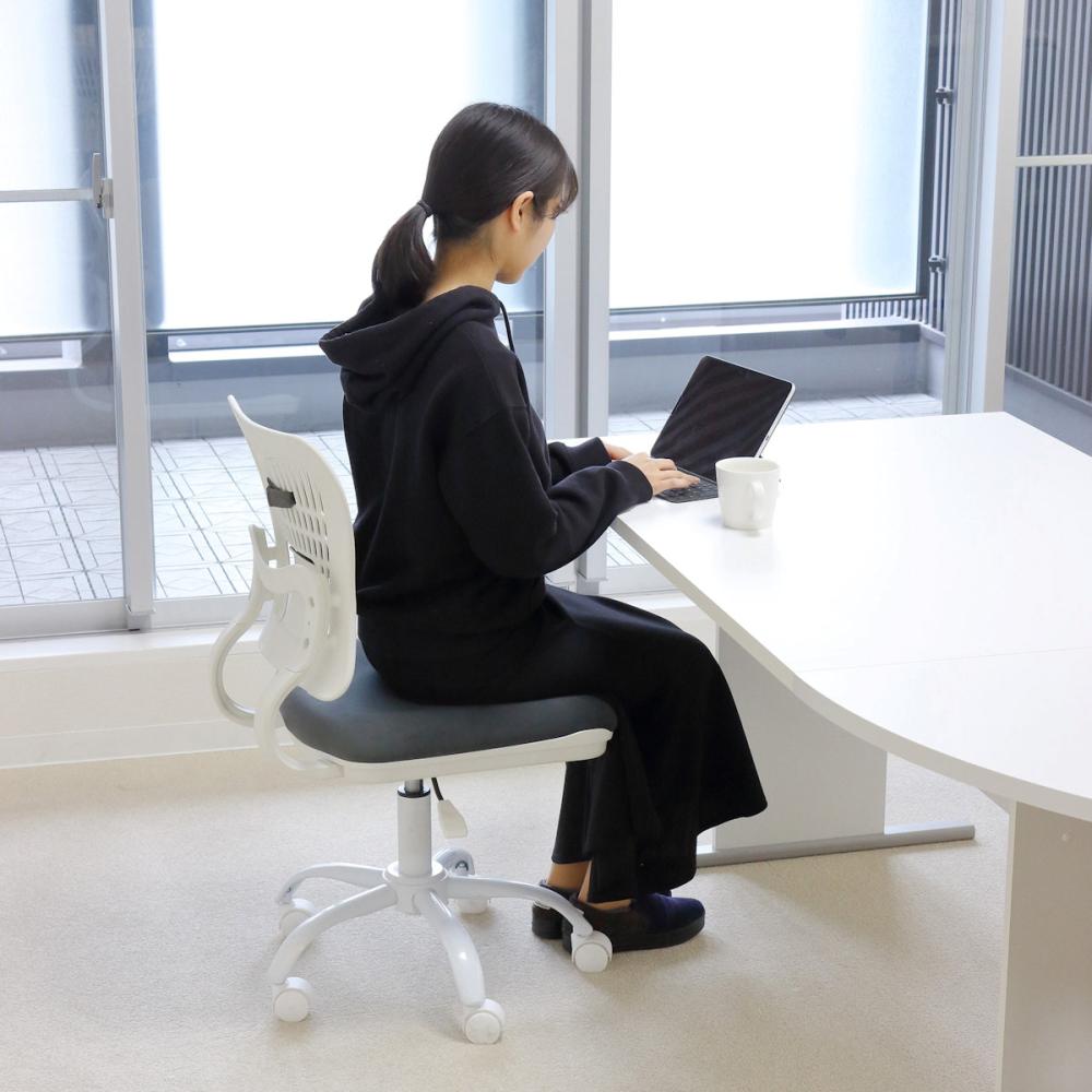 ■ガス圧式で、簡単にお好みの高さに調整できます。座面の高さ約46~56cm。 ■肘なしタイプでデスクの下に収まり、見た目もすっきり。 ■座面、背もたれクッションは、柔らかく触り心地の良いファブリック生地です。 ■背もたれクッションは取り外し可能です。マジックテープで取り付け位置を微調整できます。 【サイズ】 外寸:約幅50×高さ86~95×奥行53cm 座面の高さ:約46~56cm 【耐荷重】 80kg 【材質】 構造部材:PP・ナイロン・ファイバーグラス・スチール 張り材:ポリエステル クッション材:ウレタンフォーム ※お客様組立商品/工具不要