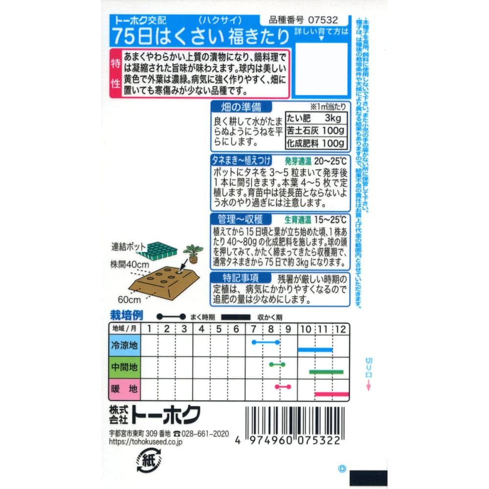 あまく歯切れの良い上質の漬物になり、鍋料理では凝縮された旨味が味わえます。 球内は美しい黄色で外葉は濃緑。 病気に強く作りやすく、畑に置いても寒傷みが少ない品種です。