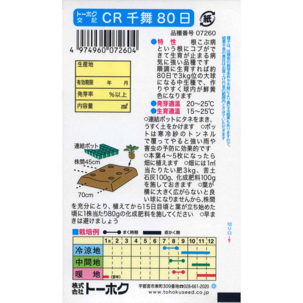 根こぶ病に強い黄芯系中生種。約80日で3kgの大球となる作りやすい品種